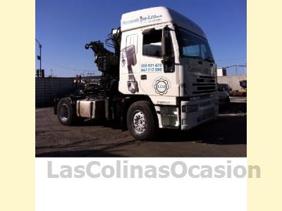 CAMIÓN IVECO CURSOR REF C-2172 CABEZA TRACTORA AÑO 2000 PMA 18.000 EURO 2 EQUIPADO CON GRÚA HIAB 260 DOS SALIDAS HIDRÁULICAS Y TRES MANUALES CABRESTANTE 4 PATAS LLANTAS DE ALUMINIO PARACHOQUES CROMADOS TRACCIÓN 4X2 AÑO 2000 TRANSMISIÓN MANUAL MEDIDA NEUMÁTICOS 315/80R22/5 DISTANCIA ENTRE EJES 3650 430 CV