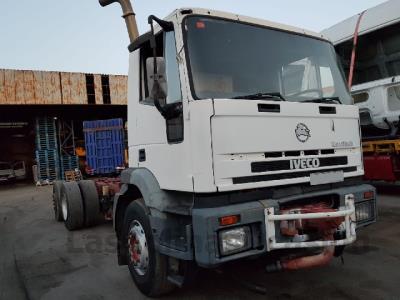 CAMIÓN CHASIS REF C-2764 AZ500 MARCA IVECO MODELO EUROTECH TRACCIÓN 6X2 TRANSMISIÓN AUTOMÁTICA 390.000 KM MEDIDA NEUMÁTICOS 315/80R22.5 SUSPENSIÓN NEUMÁTICA CABINA CORTA FRENO MOTOR 340 CV 3 EJES DISTANCIA ENTRE EJES 420 EJE DIRECCIONAL LISTO PARA CARROZAR TOMA FUERZA FRONTAL AÑO 2000 EURO 2 ABS AIRE ACONDICIONADO EQUIPO HIDRÁULICO CD CIERRE CENTRALIZADO