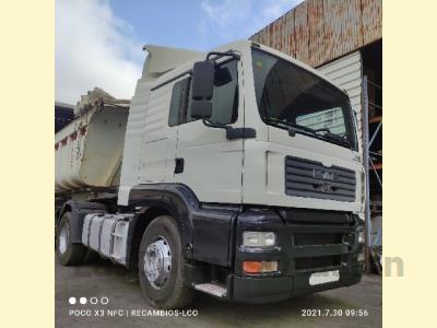 CAMIÓN MAN TGA REF: C-3159 TRACTORA AÑO 2005 780.000 KM CAMBIO AUTOMÁTICA TRACCIÓN 4X2 SUSPENSIÓN NEUMÁTICA EURO 3 MOTOR REVISADO MED. NEUMÁTICOS 315/70R22'5 430 CV LARGO 6025 ALTO 340 ANCHO 250 SUSPENSIÓN NEUMÁTICA BAJA CAMA 2 EJES DIST. ENTRE EJES 360 PMA 18.000 TARA 7.200 12 MARCHAS AIRE ACONDICIONADO CALEFACTOR CD CIERRE CENTRALIZADO ABS CONTROL ELECT. TRACCIÓN EQUIPO HIDRÁULICO SPOILER
