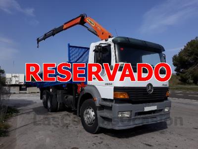 CAMIÓN MERCEDES ACTROS REF: C-3301 CON GRÚA PALFINGER PK 12000 3 SALIDAS VOLQUETE DE 5,5 MTRS CON LATERALES DE MUELLES EJE ELEVABLE TRANSMISIÓN MANUAL TRACCIÓN 6X2 300.000 KM AÑO 2002 280 CV SUSPENSIÓN NEUMÁTICA CABINA CORTA FRENO MOTOR ABS DIRECCIÓN ASISTIDA EQUIPO HIDRÁULICO VISERA