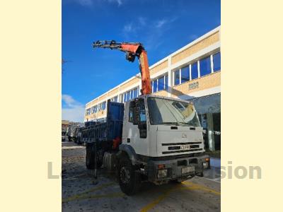 CAMIÓN IVECO 19E27 REF: C-3335 18 TN 270 CV VOLQUETE 5 MTS CON MUELLES LATERALES GRÚA PALFINGER PK 16502 5 SALLIDAS HIDRÁULICAS 1 MANUAL CABESTRANTE AÑO 2003 RADIO CONTROL 300.000 KM MED. NEUMÁTICOS 315/80.22'5 SUSPENSIÓN BALLESTA CABINA CORTA ABS TRACCIÓN 4X2 10 MARCHAS 2 EJES SE ENTREGA CON ITV, PINTURA DE BASCULANTE, CHASIS, LLANTAS Y PARACHOQUES