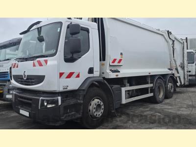 CAMIÓN RENAULT REF: C-3500 MODELO PREMIUM CONJUNTO DE BASURA EJE DIRECCIONAL 320 CV CAMBIO AUTOMÁTICO TRACCIÓN 6X2 6 MARCHAS DIST. ENTRE EJES 430 PMA 26000 TARA 11000 EURO 5 MED. NEUMÁTICOS 315/80R22'5 AL 70% SUSPENSIÓN NEUMÁTICA CABINA CORTA FRENO VÁLVULAS ABS AIRE ACONDICIONADO CALEFACTOR CD CIERRE CENTRALIZADO CONTROL ELECT. TRACCIÓN DIRECCIÓN ASISTIDA EQUIPO HIDRÁULICO